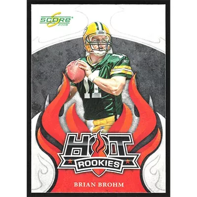 This is a 2008 Score Hot Rookies Brian Brohm football card. The card is #HR-1 and pictures show condition.