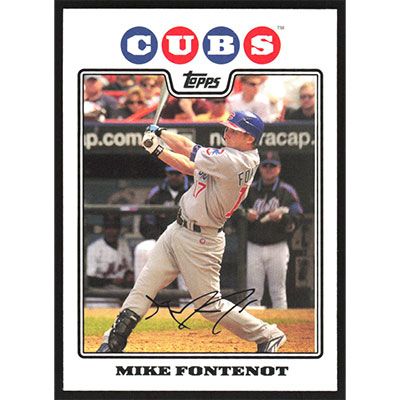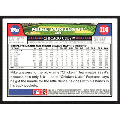 This is a 2008 Topps Mike Fontenot baseball card. The card is #114 and pictures show condition.