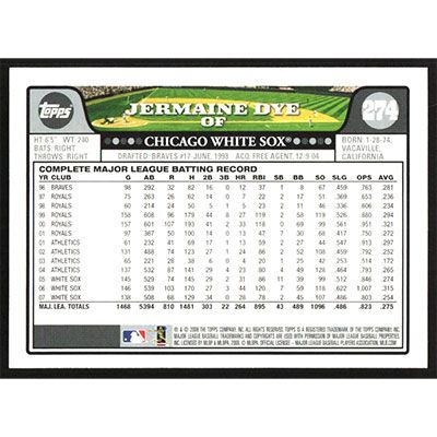 This is a 2008 Topps Jermaine Dye baseball card. The card is #274 and pictures show condition.
