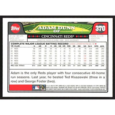 This is a 2008 Topps Adam Dunn baseball card. The card is #370 and pictures show condition.