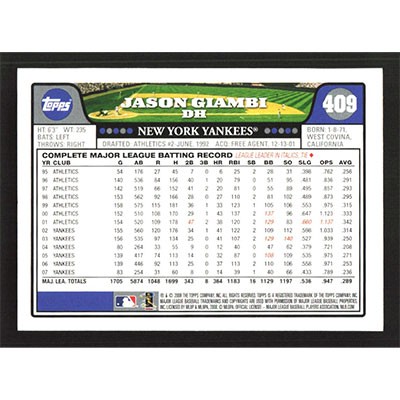 This is a 2008 Topps Jason Giambi baseball card. The card is #409 and pictures show condition.