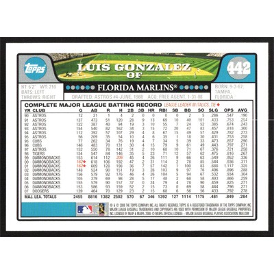 This is a 2008 Topps Luis Gonzalez baseball card. The card is #442 and pictures show condition.