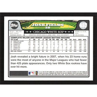 This is a 2008 Topps Josh Fields baseball card. The card is #457 and pictures show condition.