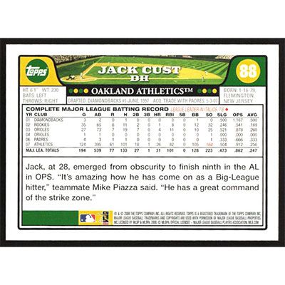 This is a 2008 Topps Jack Cust baseball card. The card is #88 and pictures show condition.