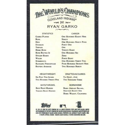 This is a 2008 Topps Allen & Ginter Mini Ryan Garko baseball card. The card is #241 and pictures show condition.