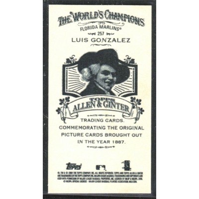 This is a 2008 Topps Allen & Ginter Mini A & G Back Luis Gonzalez baseball card. The card is #257 and pictures show condition.
