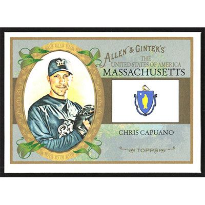 This is a 2008 Topps Allen & Ginter United States Chris Capuano baseball card. The card is #US21 and pictures show condition.