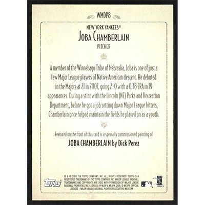 This is a 2008 Topps Dick Perez Joba Chamberlain baseball card. The card is #WMDP8 and pictures show condition.