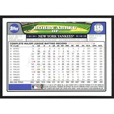 This is a 2008 Topps Opening Day Bobby Abreu baseball card. The card is #158 and pictures show condition.