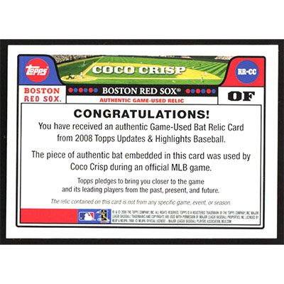 This is a 2008 Topps Update Retail Relics Coco Crisp Bat baseball card. The card is #RR-CC and pictures show condition.