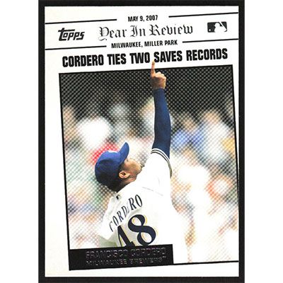 This is a 2008 Topps Year in Review Francisco Cordero baseball card. The card is #YR39 and pictures show condition.