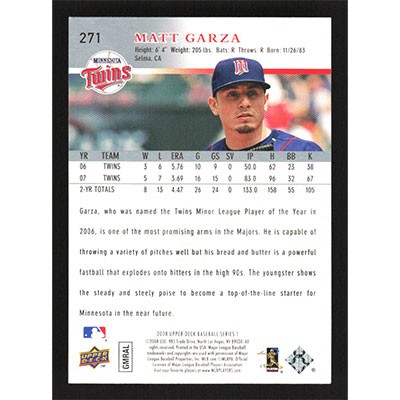 This is a 2008 Upper Deck Matt Garza baseball card. The card is #271 and pictures show condition.