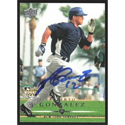 This is a 2008 Upper Deck Alberto Gonzalez autographed baseball card. This card has been signed, in blue, by Alberto Gonzalez, and is guaranteed authentic by Ballcardz.com. The card is #316 and pictures show condition.