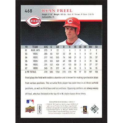 This is a 2008 Upper Deck Ryan Freel baseball card. The card is #468 and pictures show condition.
