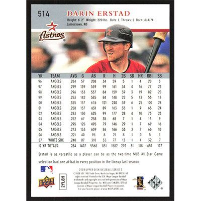 This is a 2008 Upper Deck Darin Erstad baseball card. The card is #514 and pictures show condition.