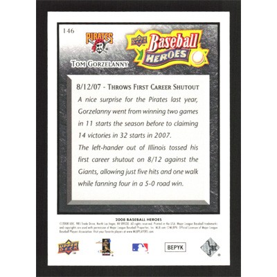 This is a 2008 Upper Deck Baseball Heroes Black Tom Gorzelanny baseball card. The card is #146 and pictures show condition.