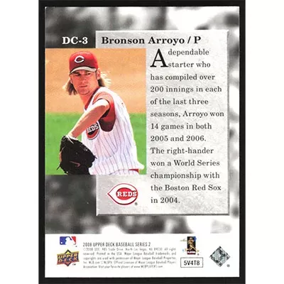 This is a 2008 Upper Deck Diamond Collection Bronson Arroyo baseball card. The card is #DC-3 and pictures show condition.