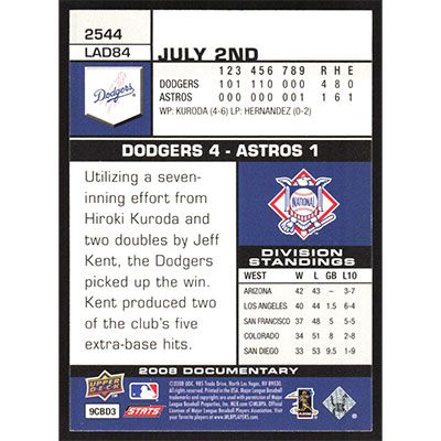This is a 2008 Upper Deck Documentary Rafael Furcal baseball card. The card is #2544 and pictures show condition.