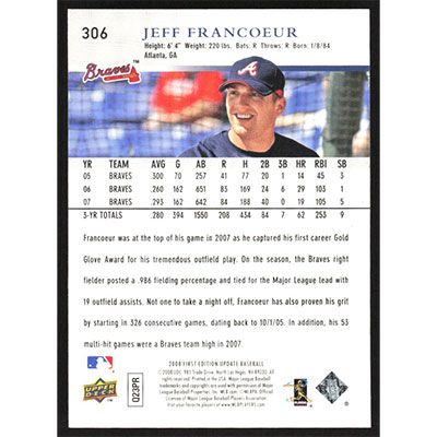 This is a 2008 Upper Deck First Edition Jeff Francoeur baseball card. The card is #306 and pictures show condition.