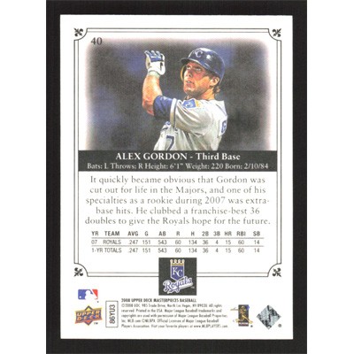 This is a 2008 Upper Deck Masterpieces Alex Gordon baseball card. The card is #40 and pictures show condition.