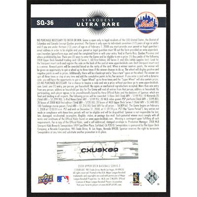 This is a 2008 Upper Deck StarQuest Ultra Rare Carlos Beltran baseball card. The card is #SQ-36 and pictures show condition.