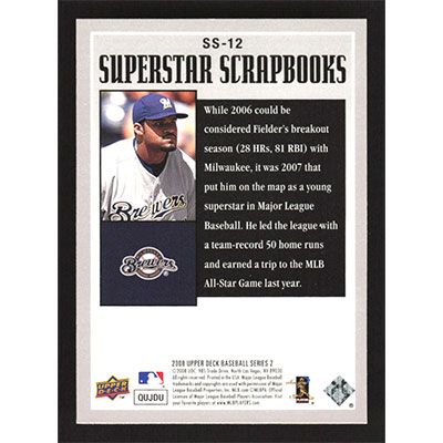 This is a 2008 Upper Deck Superstar Scrapbooks Prince Fielder baseball card. The card is #SS-12 and pictures show condition.