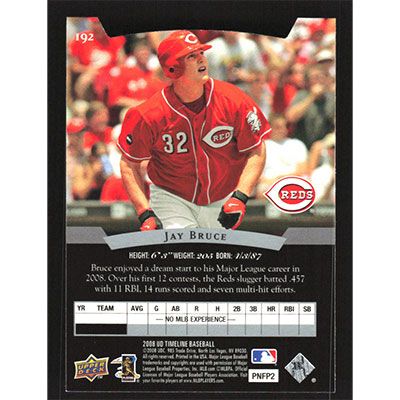 This is a 2008 Upper Deck Timeline Jay Bruce '95 SP baseball card. The card is #192 and pictures show condition. Team(s): Cincinnati Reds Rookie Card (RC)
