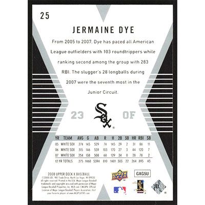 This is a 2008 Upper Deck X Jermaine Dye baseball card. The card is #25 and pictures show condition.