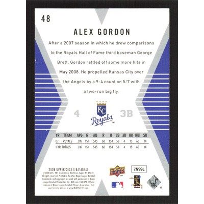 This is a 2008 Upper Deck X Alex Gordon baseball card. The card is #48 and pictures show condition.