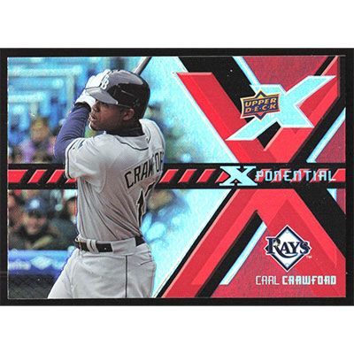 This is a 2008 Upper Deck X Xponential Carl Crawford baseball card. The card is #X-CC and pictures show condition.