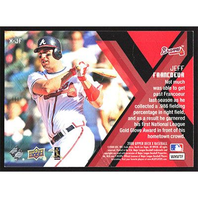 This is a 2008 Upper Deck X Xponential Jeff Francoeur baseball card. The card is #X-JF and pictures show condition.