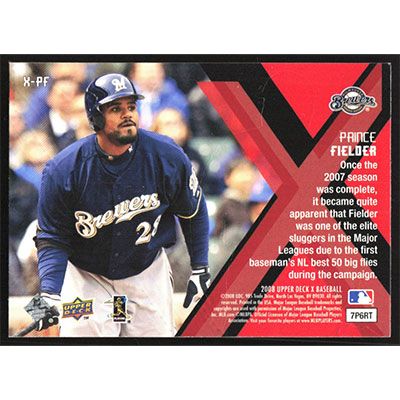 This is a 2008 Upper Deck X Xponential Prince Fielder baseball card. The card is #X-PF and pictures show condition.