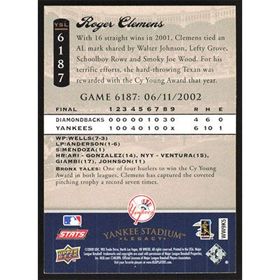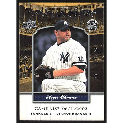 This is a 2008 Upper Deck Yankee Stadium Legacy Collection Roger Clemens baseball card. The card is #6187 and pictures show condition. Team(s): New York Yankees