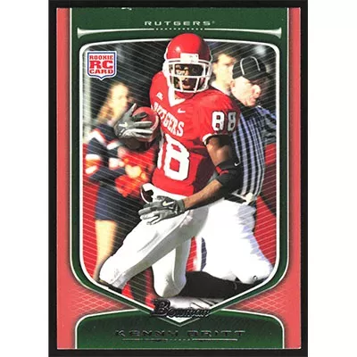 This is a 2009 Bowman Draft Kenny Britt football card. The card is #175 and pictures show condition. Team(s): Rutgers Scarlet Knights Rookie Card (RC)