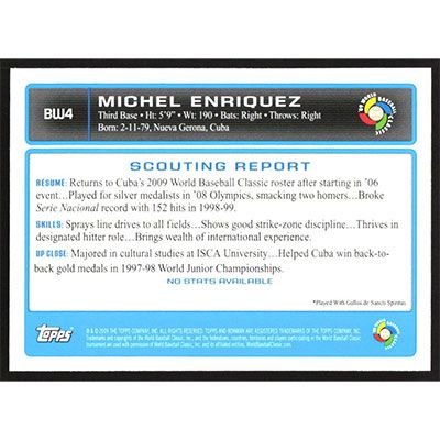 This is a 2009 Bowman WBC Prospects Michel Enriquez baseball card. The card is #BW4 and pictures show condition.