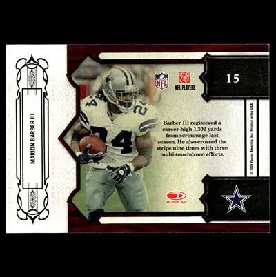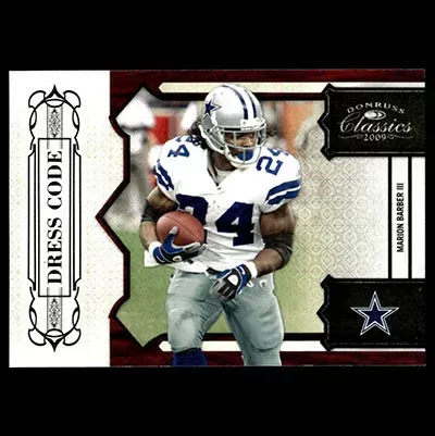 This is a 2009 Donruss Classics Dress Code Marion Barber III football card. The card is #15 and is in NM-MT condition.