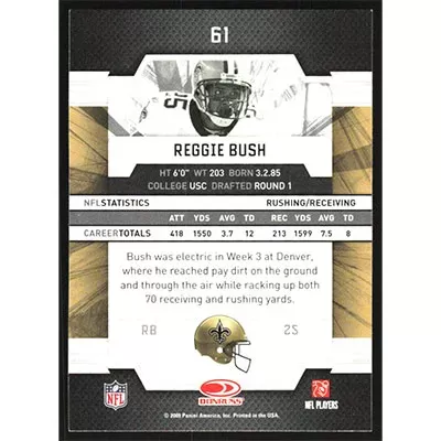 This is a 2009 Donruss Elite Retail Reggie Bush football card. The card is #61 and pictures show condition.