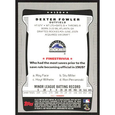 This is a 2009 Finest Dexter Fowler baseball card. The card is #130 and pictures show condition.