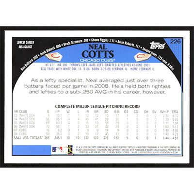 This is a 2009 Topps Neal Cotts baseball card. The card is #226 and pictures show condition.