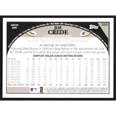 This is a 2009 Topps Joe Crede baseball card. The card is #255 and pictures show condition.