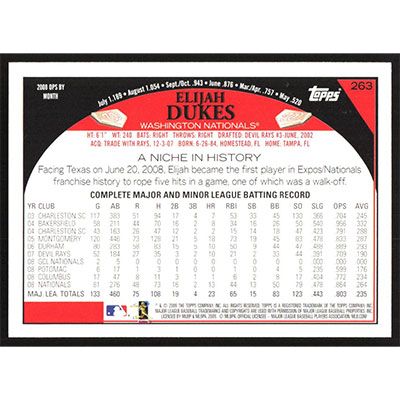 This is a 2009 Topps Elijah Dukes baseball card. The card is #263 and pictures show condition.
