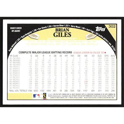 This is a 2009 Topps Brian Giles baseball card. The card is #302 and pictures show condition.