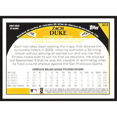 This is a 2009 Topps Zach Duke baseball card. The card is #303 and pictures show condition.
