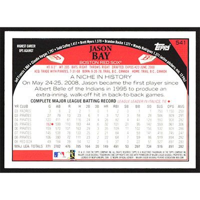 This is a 2009 Topps Jason Bay baseball card. The card is #541 and pictures show condition.