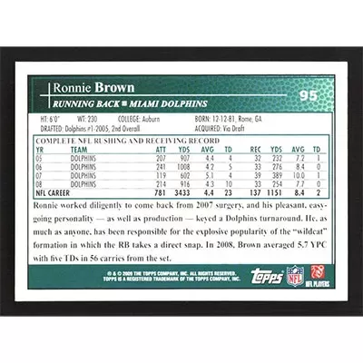 This is a 2009 Topps Ronnie Brown football card. The card is #95 and pictures show condition.