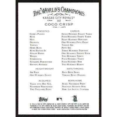 This is a 2009 Topps Allen & Ginter Coco Crisp baseball card. The card is #147 and pictures show condition.