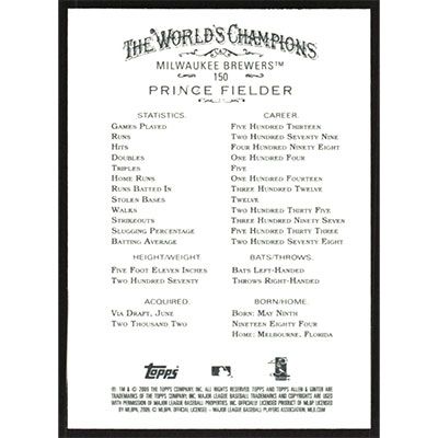 This is a 2009 Topps Allen & Ginter Prince Fielder baseball card. The card is #150 and pictures show condition.