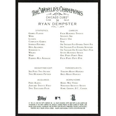 This is a 2009 Topps Allen & Ginter Ryan Dempster baseball card. The card is #34 and pictures show condition.