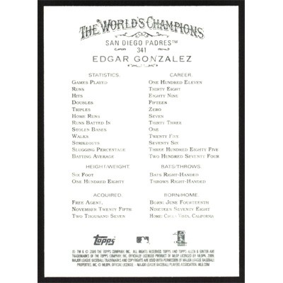 This is a 2009 Topps Allen & Ginter Edgar Gonzalez short print baseball card. The card is #341 and pictures show condition.