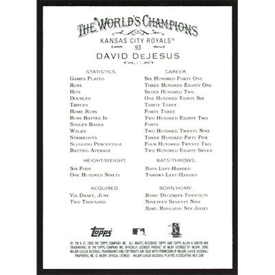 This is a 2009 Topps Allen & Ginter David DeJesus baseball card. The card is #93 and pictures show condition.